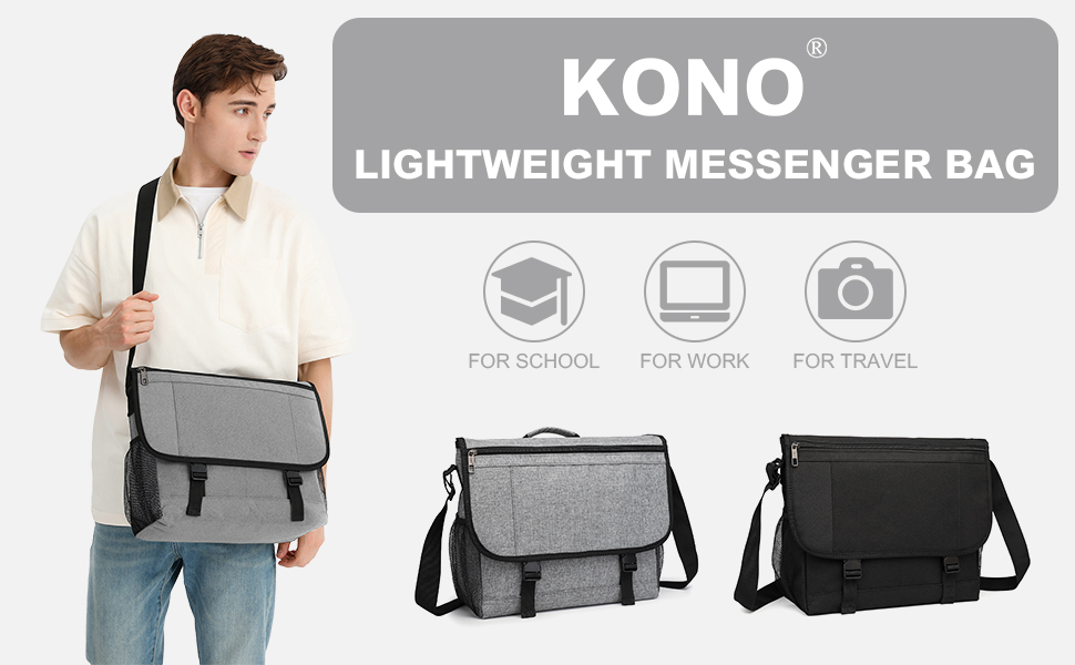 Lightweight and water repellent: The KONO Messenger Bag for Men is made of high-quality, waterproof material that reliably protects your belongings. Weighing just 0.59 kg, it is a lightweight and functional unisex bag-perfect for work, school and business traveling.