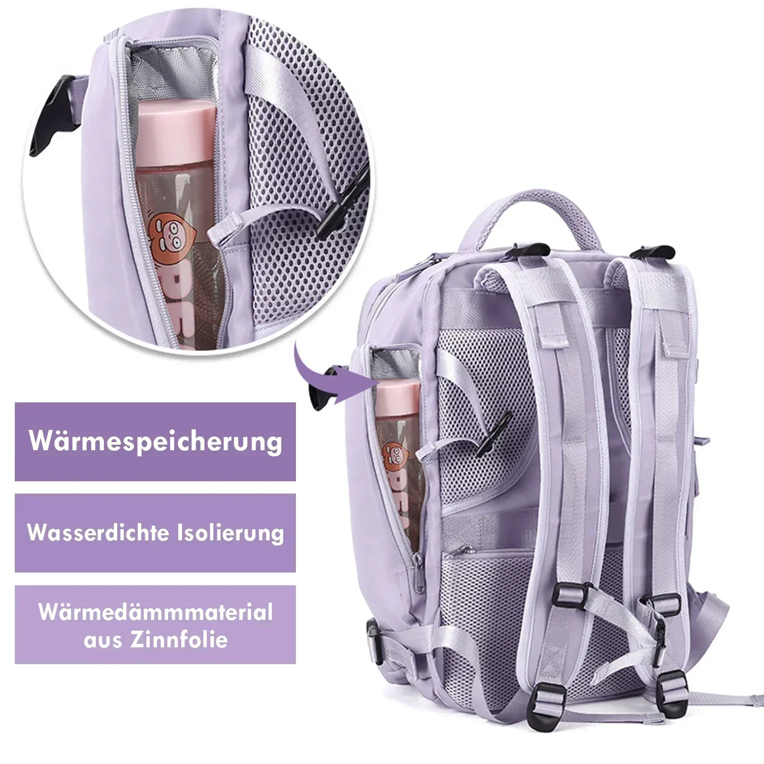 Vielseitige unterteilte Aufbewahrung: Es gibt mehrere Schichten unterteilter Aufbewahrung innerhalb und außerhalb des Rucksacks. Die wasserdichte Isolationstasche an der Seite kann Wassergläser und Regenschirme verstauen.