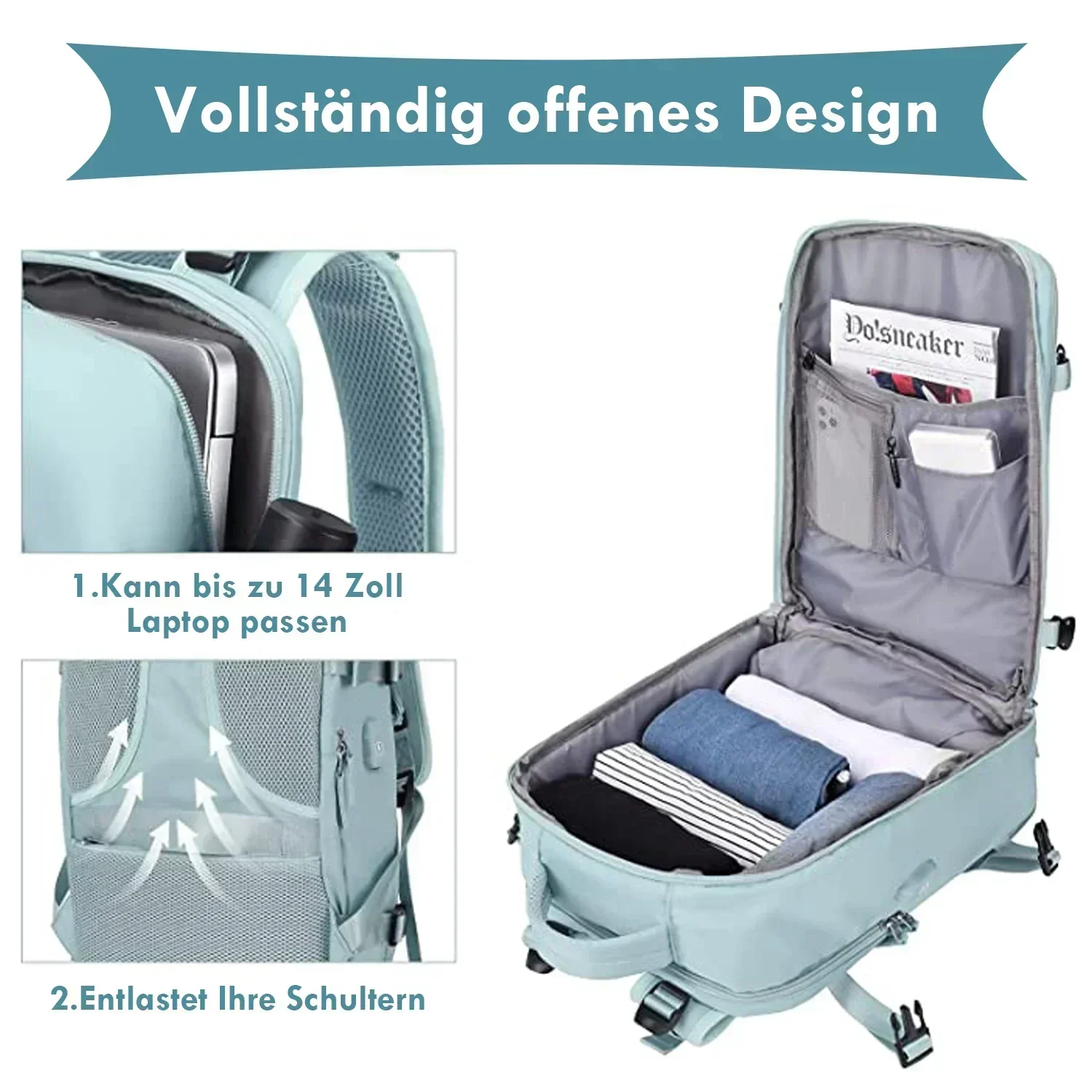 Reiserucksack 45L mit USB-Ladeanschluss,für 14 Zoll Laptop Schuhfach,Wasserdich